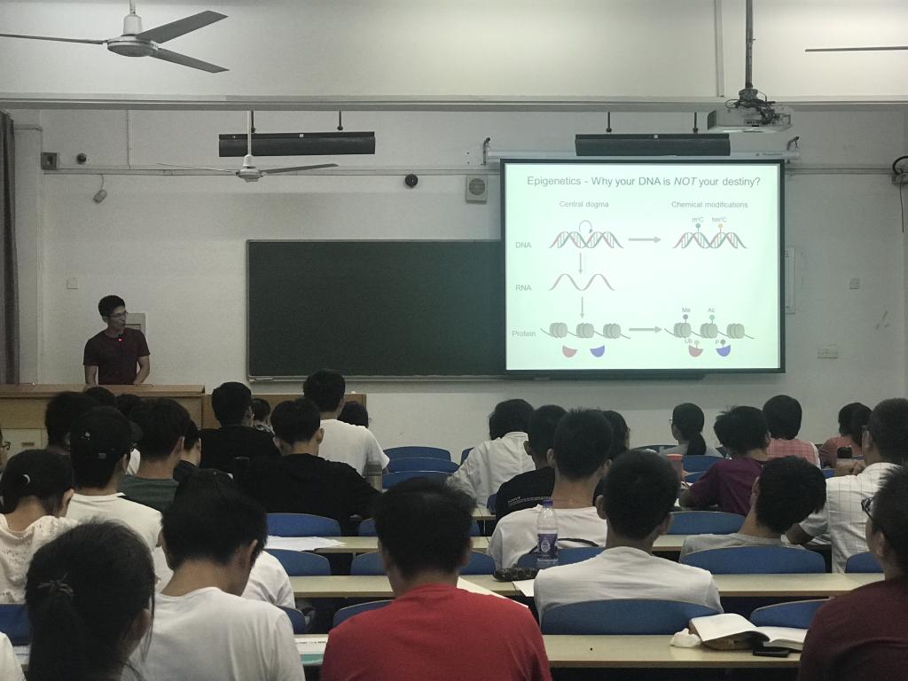 (通讯员 陈瑶)9月7日晚上七点,2019年度吴瑞奖学金获得者、​2010级生物信息技术基地班毕业生熊旭深博士在东十二楼310教室与2018级学弟学妹进行交流分享。吴瑞奖学金被誉为华人生命科学在读博士最高奖项,十年来,仅颁发百余人次,熊旭深博士于今年荣获此奖。此次,熊旭深博士不仅分享了他的研究方向以及个人经历,还叮嘱学弟学妹趁早明确自己的发展方向。