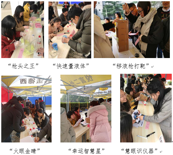 本次活动共6组小游戏,分别是“枪头之王”“移液枪打靶”“快速量液体”“火眼金睛”“幸运智慧星”“慧眼识仪器”,它们均是由日常实验操作改编而成,每组都有自己的亮点。