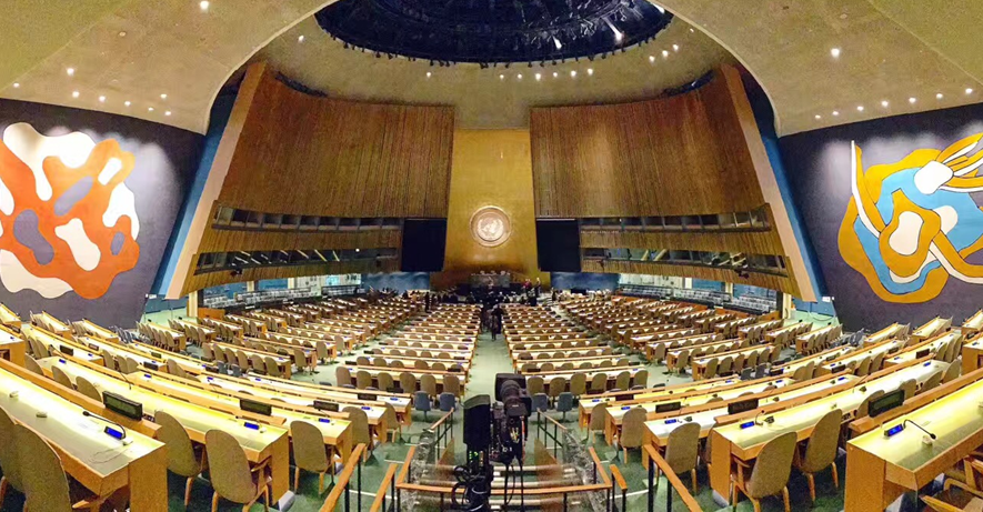联合国是第二次世界大战后由主权国家组成的国际组织,现在共有193个成员国,其在维护世界和平,缓和国际紧张局势,解决地区冲突方面,在协调国际经济关系方面,促进世界各国经济、科学、文化的合作与交流方面,都发挥着相当积极的作用。由于时间关系,我们只有半小时的自由参观时间,不过能目睹联合国会议室大厅,也是十分宝贵和值得的。