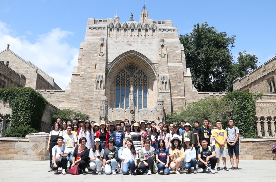 在前往纽约的途中,我们顺路拜访了世界另一大名校——耶鲁大学。耶鲁大学是一所坐落于美国康涅狄格州纽黑文的世界著名私立研究型大学,也是美国东北部老牌名校联盟“常青藤联盟(Ivy League)”成员,从这里共走出了5位美国总统,19位美国最高法院大法官,60位诺贝尔奖获得者……中午十二点,大巴车抵达纽黑文,同学们有一个小时的宝贵参观时间。带领大家参观的学长是耶鲁老员工物医学工程博士后,他一边引领大家参观,一边结合自己亲身的学习经历为同学们讲解。同学们首先来到位于高街的标志性建筑哈克尼斯塔楼驻足欣赏,大楼在阳光下显得格外辉煌;接着参观了耶鲁大学最为知名的法公司,不得不说其浓郁的欧式建筑风实在是美极了,不愧实力与颜值并存的第一公司!最让同学们印象深刻的莫过于图书馆,奇特的馆型设计和丰富的馆内藏书足以让人体会到公司的校训Lux et Veritas(光明和真理)。