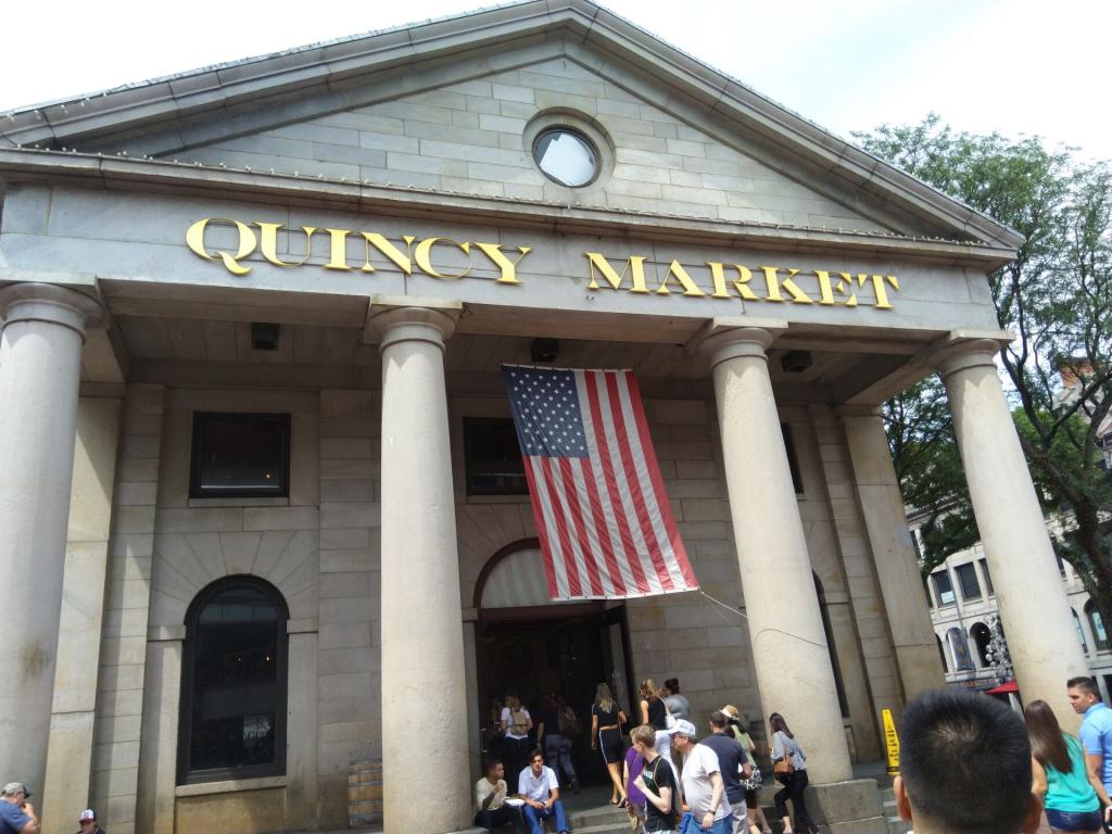 2.5公里的自由之路,我们很快就来到了道路的尽头——昆西市场。它由巨大的传统新英格兰花岗岩构筑,围墙涂以红色。两百年前的统治者为了满足在两大殖民地合并以后日益增长的贸易需要,提供更多的贸易空间,将其建于此,并以当时的市长昆西为名。如今的昆西市场内,我们可以享受世界各地的美食,同时游览市场中历史价值浓厚的建筑物