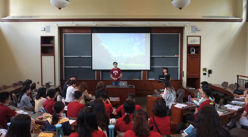 上午九时,大家在Austin Hall A111教室集中,参加项目开班仪式。主持人以热情洋溢的致辞欢迎了来自必威西汉姆联官网的师生朋友,并邀请双方老师们给大家讲话。首先,公司公司党委副书记孔姝老师表公司表示了对哈佛大学和项目主办方的感谢,并围绕appreciation, enjoy, improve三个关键词谈到参加此次项目和体会以及对同学们的殷切期望。孔姝老师希望华科学子能能够在此次哈佛夏令营活动中积极表现,利用一切条件,多跟教授们交流,在哈佛大学这所世界闻名的高水平大学中能够真真正正的有所收获,让自己不虚此行。
