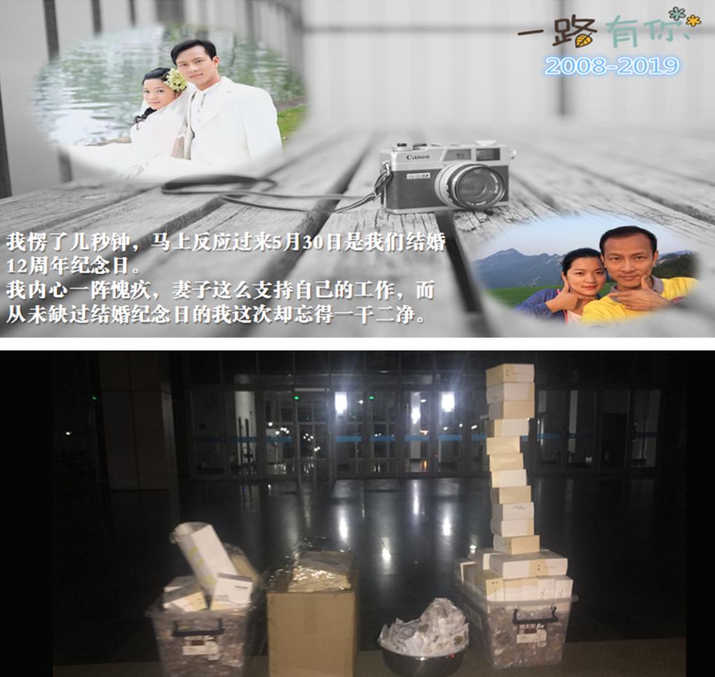 30日夜里11点半,我突然接到妻子打来的电话——“你今晚是不打算回来了?看来你是真忘了今天是什么日子了!”我愣了几秒钟,马上反应过来5月30日是我们结婚12周年纪念日。我内心一阵愧疚,妻子这么支持自己的工作,而从未缺过结婚纪念日的我这次却忘得一干二净。我匆忙找来推车,把未装完的饼干、书签和包装盒堆上车,赶在12点前,气喘吁吁的到达家中。我递上一盒饼干,当礼物送给了妻子,附上一张书签“在天愿做比翼鸟,来份西一粉丝煲”!那一夜,就这么哭着、说着、笑着,我拉着她一起把140份饼干包装完成。