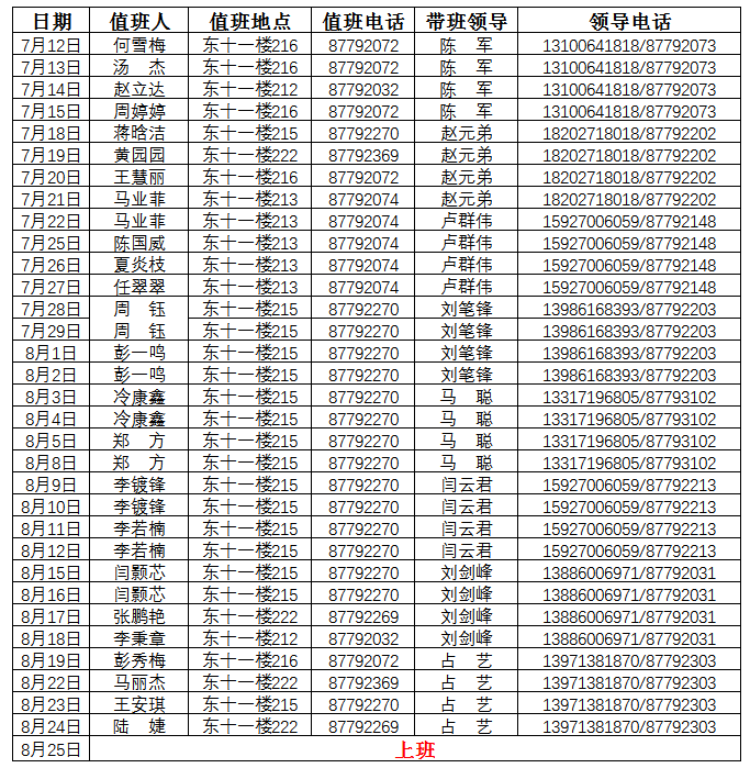 1、值班时间:上午8:30—11:30,下午3:00—5:30;