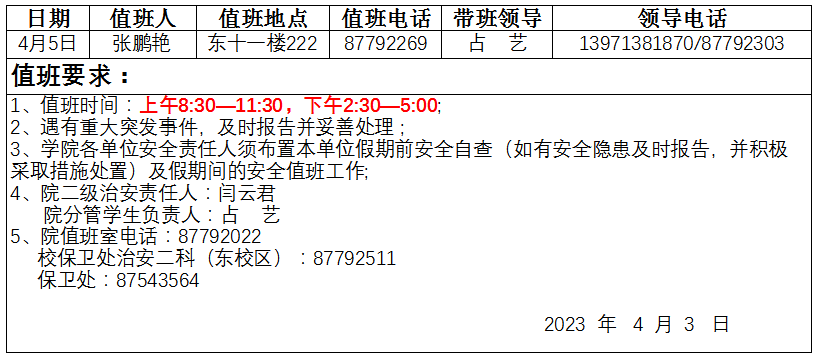 2023年清明值班安排