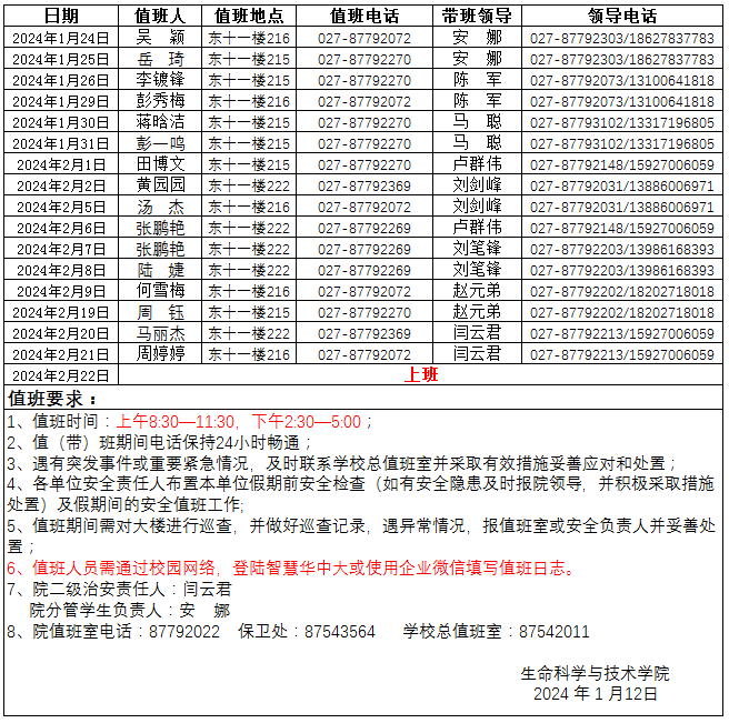 2024年寒假值班安排