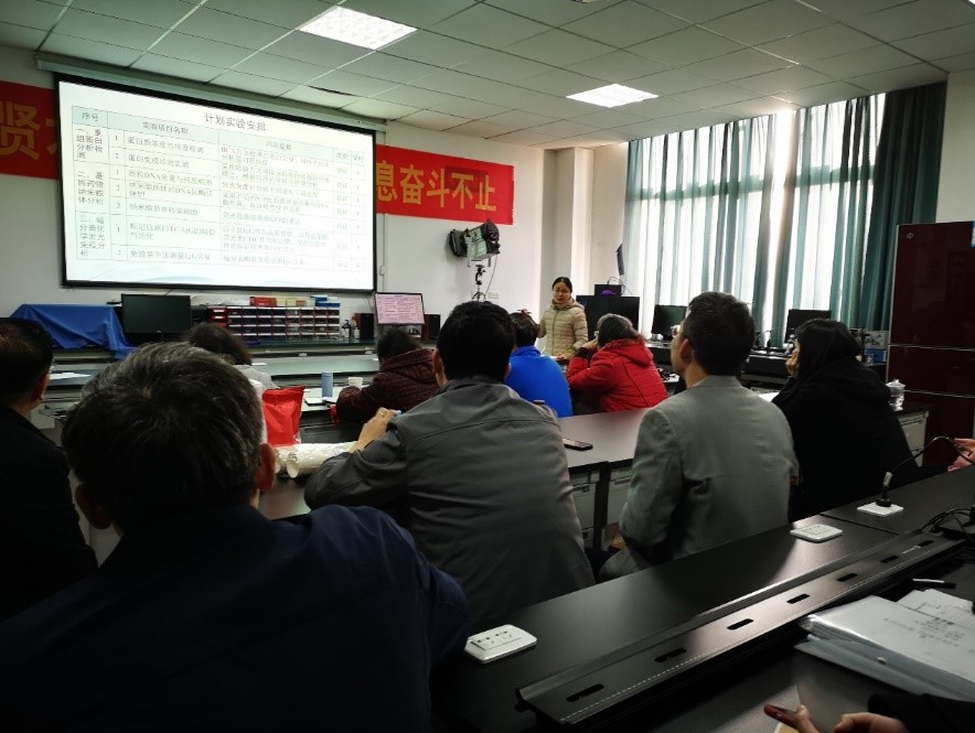 基于《生物药物分析实验》,白虹老师介绍了课程安排、相关院校课程开设情况、目前课程教学存在的局限性及改革计划。课程负责人李子福教授和杨海副教授对这门课目前的教学安排表示赞同,并结合科研进展提出一些建设性的方案,如将鸡胚模型实验、分子诊断技术/HPLC/MS技术纳入课程体系等。