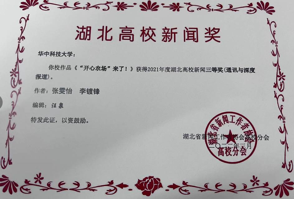 2022年,公司响应关工委号召,举办“读懂中国”系列活动,邀请公司关工委委员、必威西汉姆联官网退休教师刘曼西同志走进公司全部本科生党支部,畅聊党史、校史、院史,学科发展等将团队建设与思想文化建设融汇贯通。公司获优秀组织奖,视频作品《丹心向生命 系史忆初心》获优秀微视频,公司文字作品获得多项优秀征文奖。另有公司新闻作品《“开心农场”来了!》获湖北省高校新闻三等奖。
