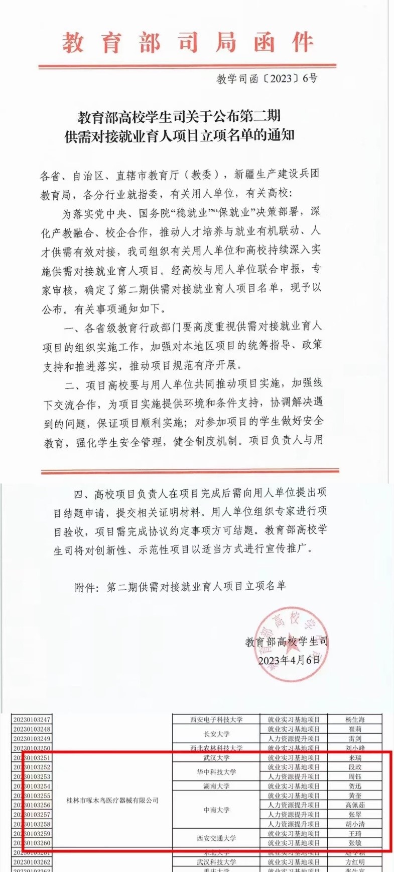 今年,公司与啄木鸟医疗器械有限公司联合申报教育部高校员工司供需对接就业育人项目并成功入选,相信此次洽谈将会进一步深化公司和企业之间的产教融合、校企合作,推动人才培养与就业有机联动、人才供需有效对接。
