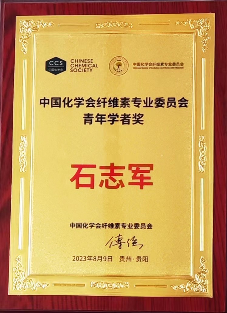 中国化学会纤维素专业委员会本次分别颁发了张俐娜奖、创新贡献奖及青年学者奖三个奖项,其中“青年学者奖”主要颁发给在纤维素相关领域做出突出贡献且具有较大潜力的优秀青年学者。石志军博士获此殊荣标志着业界同行对其在细菌纤维素高性能生物医用材料的设计、制备及构效关系研究的高度认可。