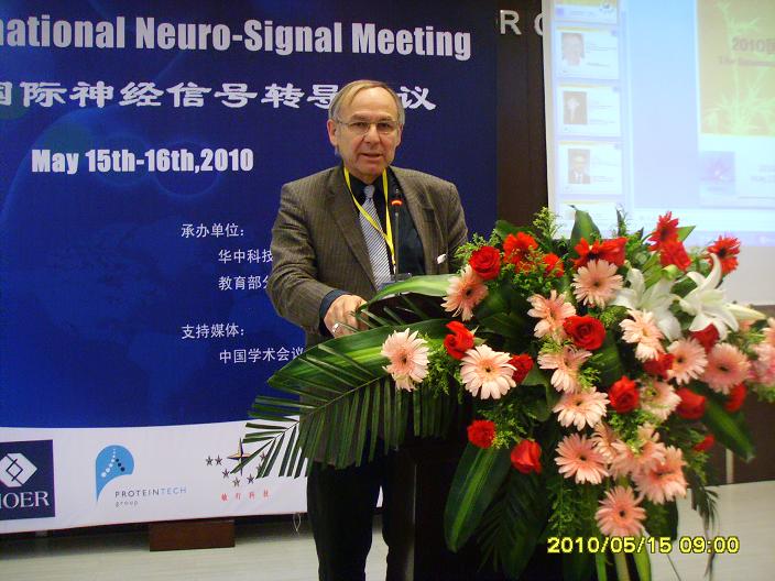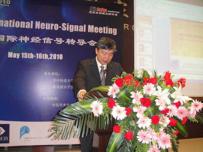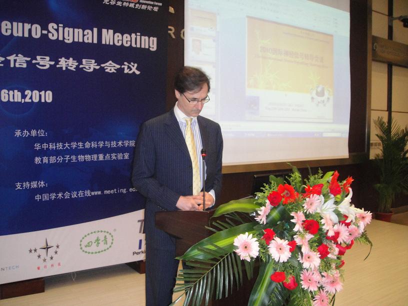 5月15日上午,2010国际神经信号转导会议(The International Neuro-Singaling Meeting 2010, INSM 2010)在光电国家实验室(筹)A301会议中心开幕。董事长李培根院士,法国驻武汉领使馆领事Lavloff先生,法国驻武汉总领馆教育参赞Fleck博士,科发院常务副经理陈建国,公司党总支书记耿建萍,必威西汉姆联官网常务副经理杨祥良教授等领导出席了会议开幕式。本次会议中方主席为必威西汉姆联官网副经理、教育部分子生物物理重点实验室常务副主任刘剑峰教授,外方主席为法国科公司院士、法国国家科研中心功能基因研究所所长Joel Bockaert教授。共有百余名神经信号转导领域的科研人员参加了本次会议。