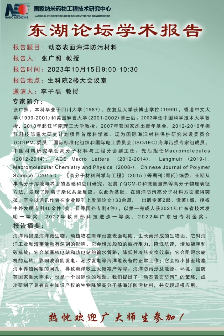 【东湖生命论坛】动态表面海洋防污材料