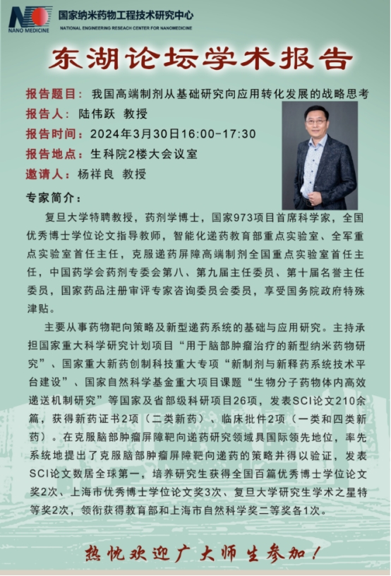 报告题目:我国高端制剂从基础研究向应用转化发展的战略思考