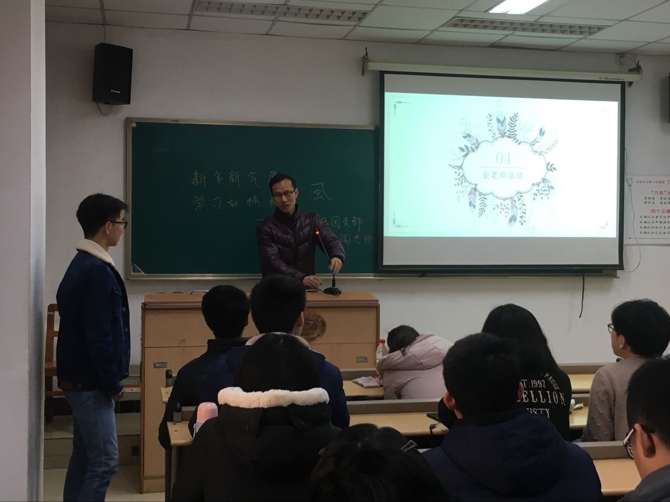 临床(五年)1808团支部以习近平主席新年贺词中的“新年回望,不负年华”为主题,团会以一首诗“西风吹老洞庭波,一夜湘君白发多。醉后不知天在水,满船清梦压星河。”开场,渲染气氛,然后以寝室为单位,各寝室代表分别上台分享自己搜集到的2018国家成就,进而形成更深的了解。这一次的团会大大提高了全班同学的参与率,同时微信小程序分组的创意打破了寝室之间的界限,增强了班级凝聚力,并且很多同学也在团支书对新年习俗的讲解之中学到了一些“干货”,并表示希望以后的团会能够比这个更好。