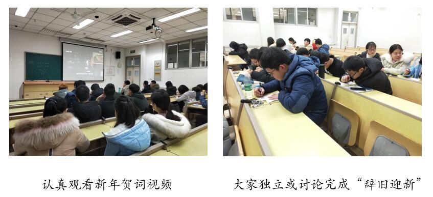 临床(五年)1802团支部委员会在开展团会共同讨论、前精心策划,以“立足当下,展望未来”为主题,除了完成学习任务外,还组织策划了“辞旧迎新”活动,共同回忆了大一上学期以来的集体活动以及自己的学习生活,并在纸上写下了自己大一上学期没做好的事情和大一下学期想做到的事情,“多看书”、“认真学习”等常见词语频频出现,也有“多参加活动”、“热爱生活”等目标。