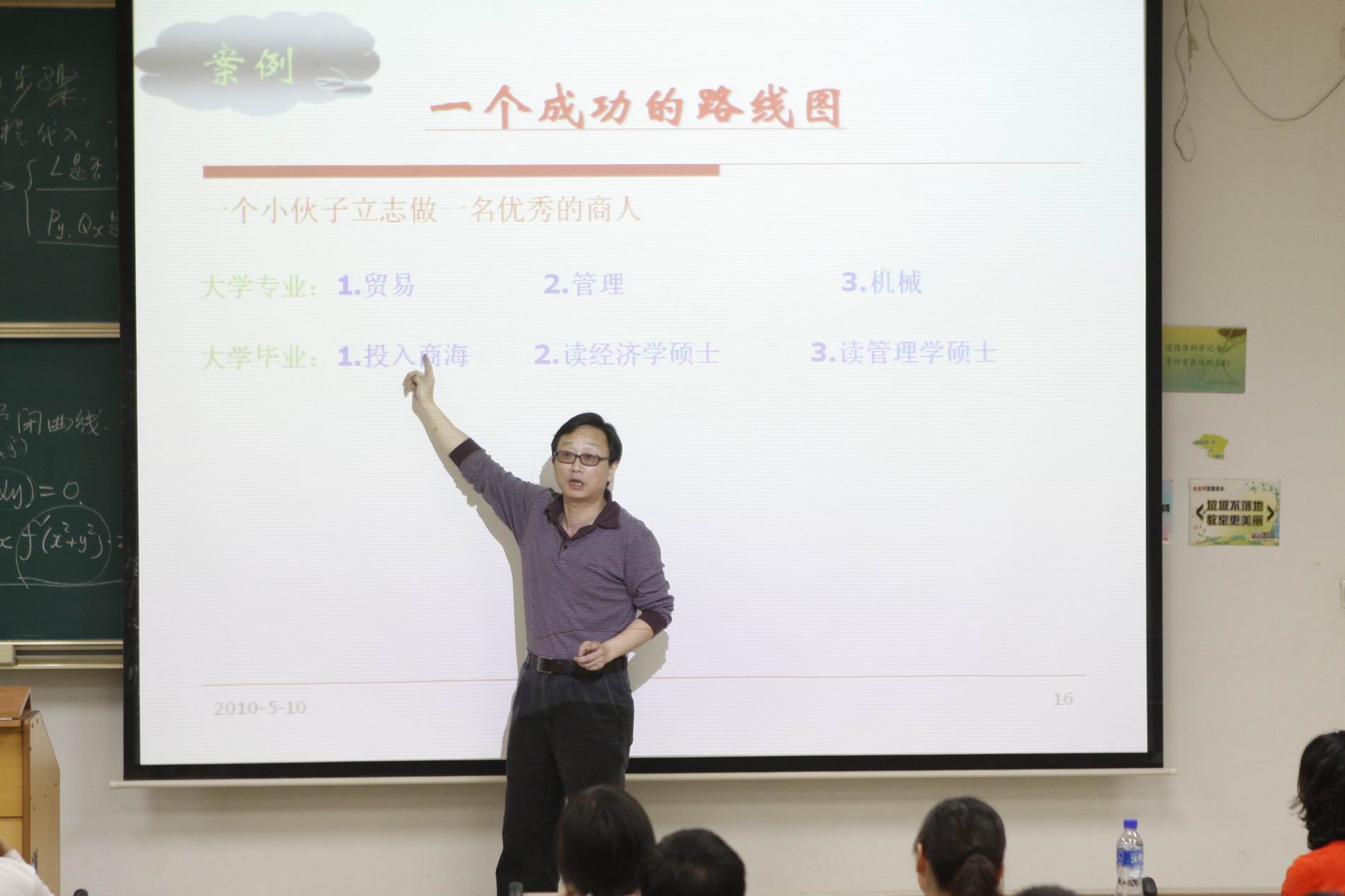 讲座的一开始,毛老师即对大学毕业生出国、考研和工作三条道路做了一一比对与分析:出国、考研,需要有一定的经济基础,同时,学习、研究能力也要求较高;而由于当前所面临着中国经济发展的较好的机遇,以及专业实践的需要,工作应当是较好的选择。