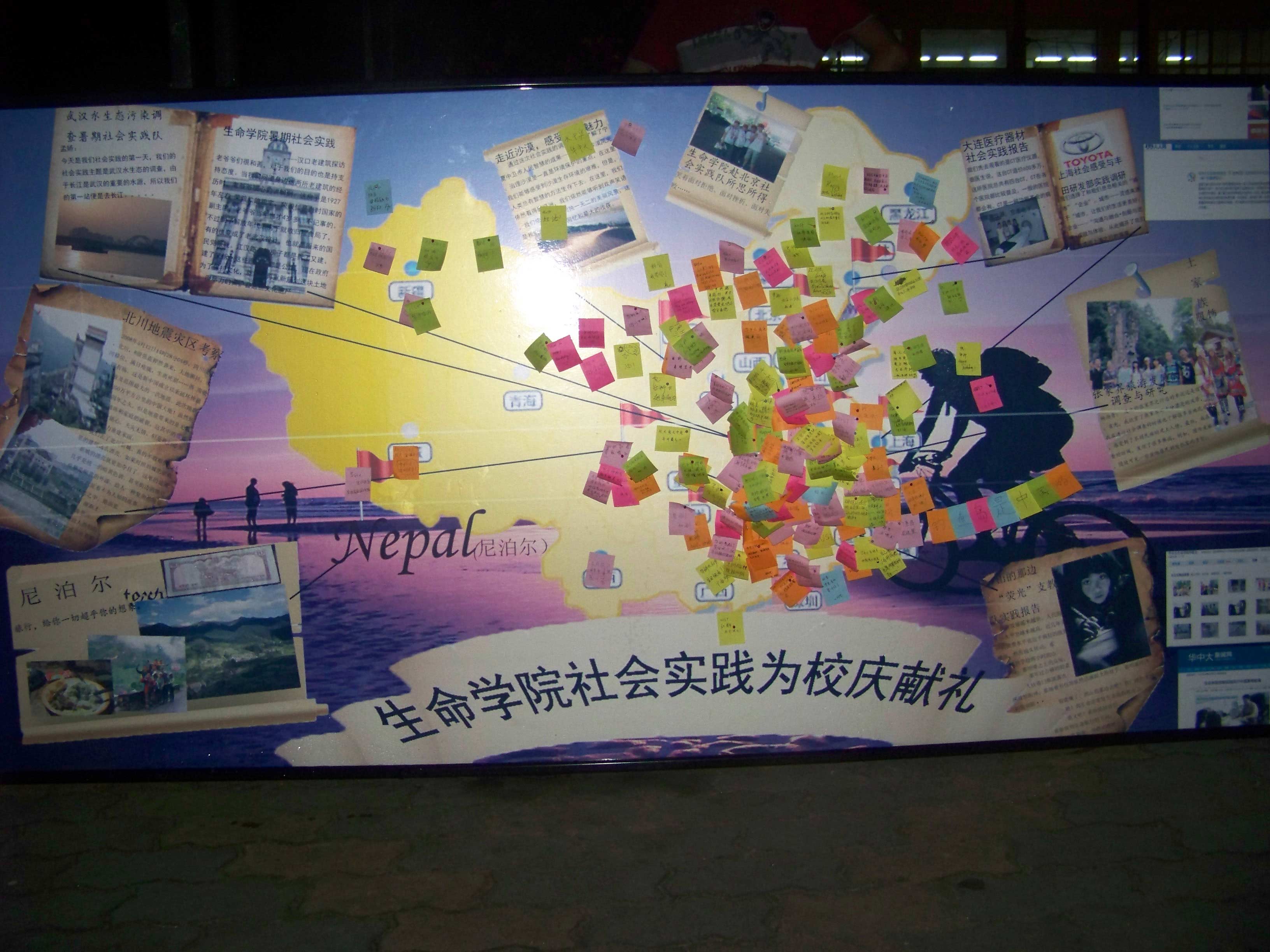 活动期间,一块块展示板陈列在展示路口,吸引了众多新生学子驻足观看,展示牌上贴满了必威西汉姆联官网社会实践成果的照片,引来了不少称赞与唏嘘。值得一提的是,在现场工作人员的引导下,共同策划了一场为母校送祝福的活动。过往的学子纷纷留下自己对母校六十华诞的祝福,并贴印有必威西汉姆联官网社会实践地点标识的中国地图上的自己家乡的位置,寓意来自全国五湖四海的莘莘学子同必威西汉姆联官网一道庆贺华中大六十岁生日快乐!