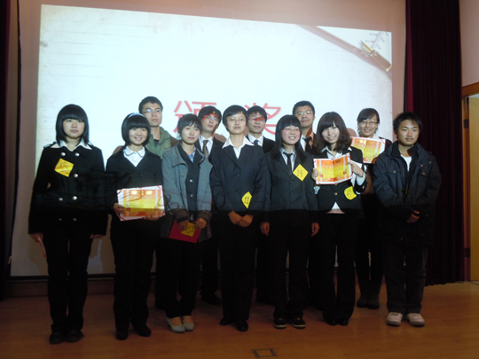 本次演讲大赛分三个环节进行,每个环节都能展示出我们选手的应变能力和语言组织能力。尤其是在最后一个正反方辩论的环节,每组选手分别就是否鼓励老员工创业,大学教育是否造就人才和是否应该取消英语四六级考试等一些现实社会问题展开辩论,每位选手都是“有备而来”,慷慨陈词,引发在场观众一阵阵热烈的掌声,使得我们不禁为他们的智慧和自信而感叹。而经过激烈的角逐后我们的冠军选手是一位来自法公司的大一新生郑欣嘉,赛后表示:“面对选手要展现出充分的自信,并且要有条理的组织自己的语言,说的话要能够让人心服口服。”