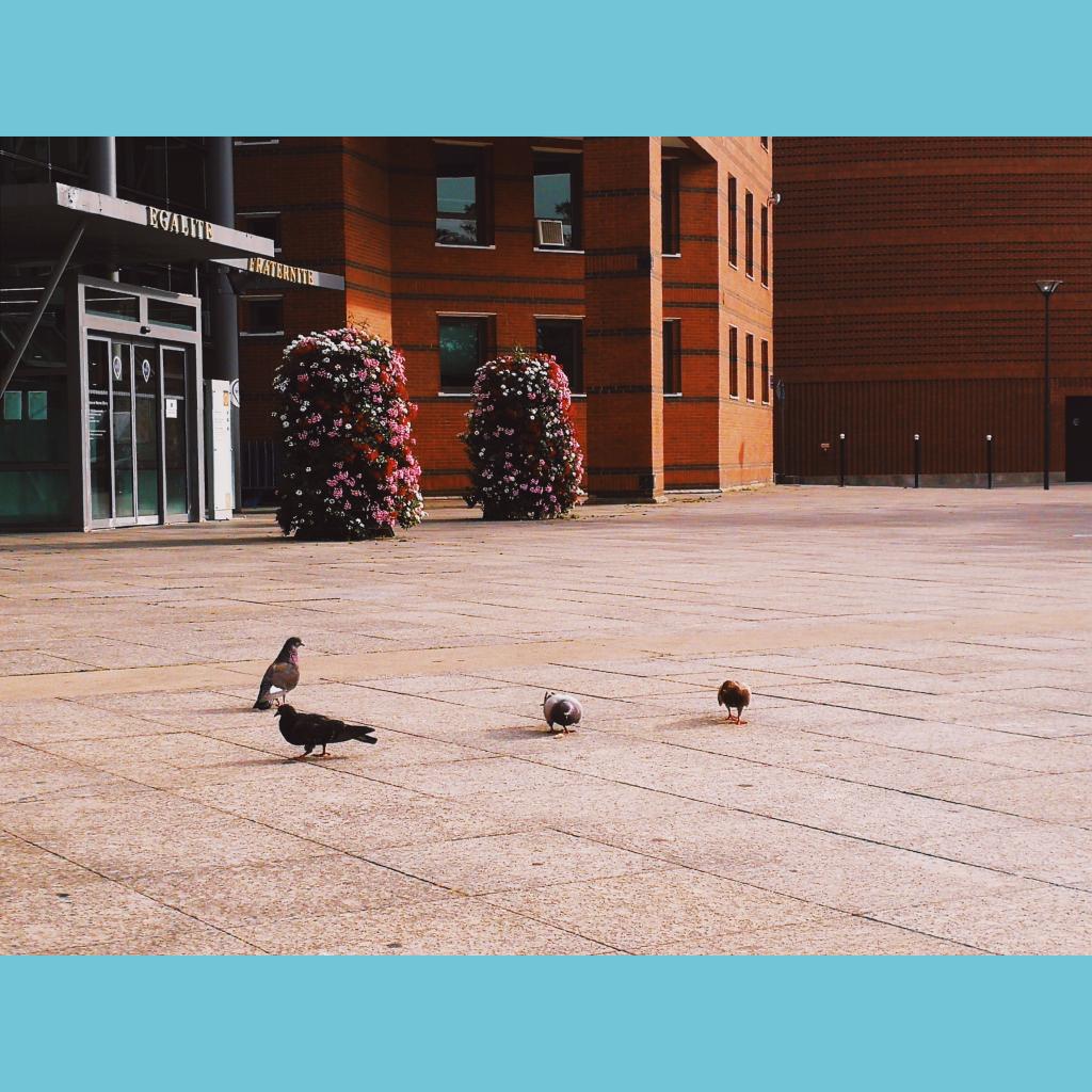 晚饭过后,伴随着空灵绵长的钟声,我们踏上回宿舍的路。夕阳颇有“老当益壮”的架势,毫不吝啬的把光与热赠与大地。这可乐坏了孩子们,他们穿着清凉的衣服,在楼前的喷泉里嬉闹着,纵情地奔跑着。纤细地胳膊撩起水花,如同一颗颗闪耀的水晶一般璀璨多芒。他们脸上的笑容更加灿烂。喷泉被快乐簇拥着,每每经过,都会被这纯粹的快乐感染,露出微笑。路上,几只鸽子在啄着一小片面包。它们有的披着灰色的绒衣,有的顶着金色的桂冠,有的带着翡翠的项链。也许是伙食太好,这里的鸽子都显得十分富态,挺着圆滚滚的肚子,迈着雄赳赳的步子。当有人走近,它们便慢条斯理的让开。法国不愧是浪漫的国家,连鸽子都透露着从容的气质。