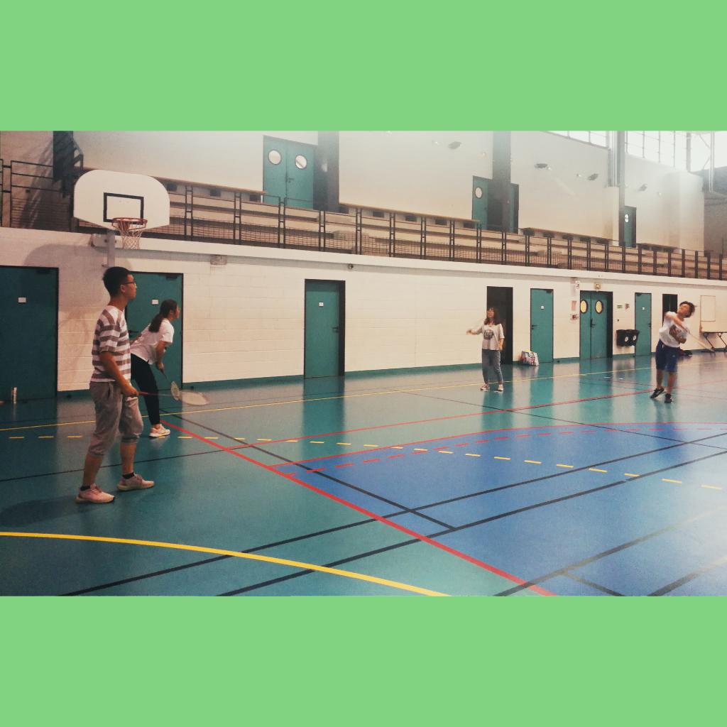 下午四点开始上体育课,同学们最喜欢的课程。这一次我们不仅可以攀岩,还能打篮球和打羽毛球。篮球起源于美国,是奥运会核心比赛项目,是以手为中心的对抗性体育运动。羽毛球是一项室内、室外兼顾的运动。现代羽毛球运动起源于英国。这项活动极富趣味性,很快就在上层社会社交场上风行开来。“伯明顿”(Badminton)即成为英文羽毛球的名字。同学们在体育馆愉快地打篮球打羽毛球,老师也在做瑜伽来放松身心,体育馆里充斥着欢声笑语。再一次攀岩,大家都有了一些经验,很多同学都登上了顶峰,我们的阿兰爷爷也不甘落后,他矫健的身手着实让人吃了一惊。这种独特而有趣的体育课在国内是不常见的,它让我们在快乐运动的同时锻炼了我们的身体磨砺了我们的意志,还丰富了我们的生活,使同学间的感情更加深厚,在法国的路程中留下了浓墨重彩的一笔。