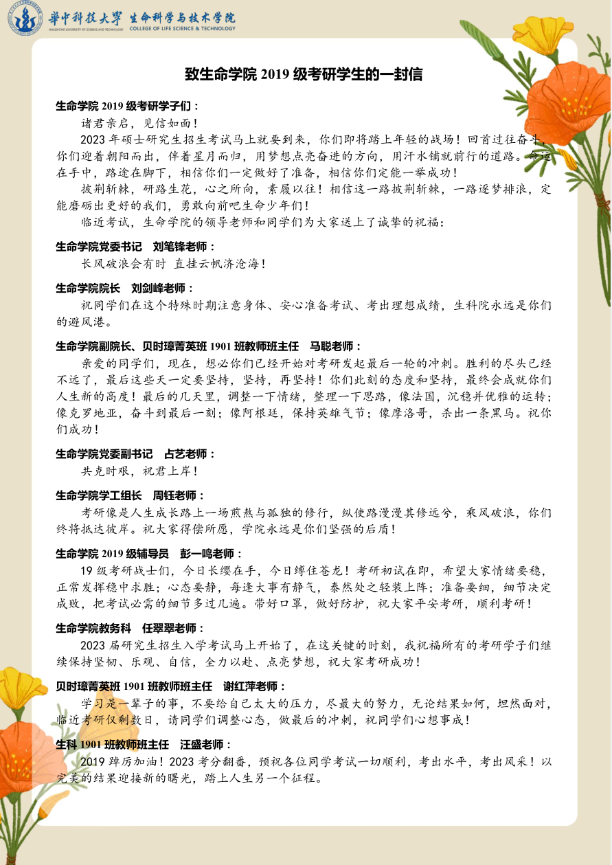 这是由公司领导老师、教师班主任、辅导员、教务老师和同学们共同撰写的《致2019级考研员工的一封信》,信中饱含了老师同学们对即将进入考场的2019级考研战士们的殷切期望与真诚祝福!