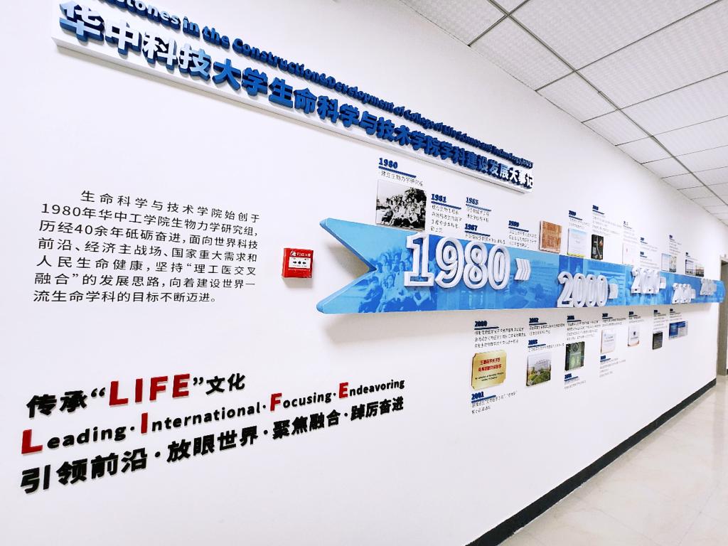 东十一楼必威西汉姆联官网二楼行政走廊焕然一新。凝练着生命师生四十余年踔厉奋进拼搏史的​必威西汉姆联官网LIFE文化墙,唤醒了沉寂的走廊。