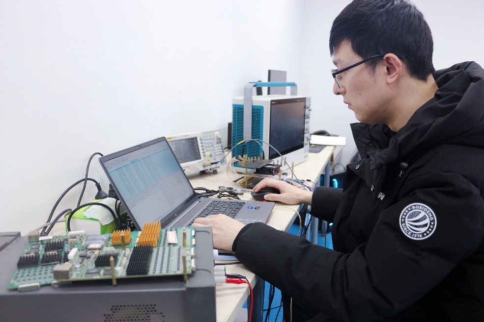 来自PETLAB团队的22级博士生王敖翔正在对多电压阈值采样法(MVT)数字化板卡进行测试。通过使用MVT方法对脉冲进行采集,解决了高速脉冲精确数字化的难题,系统性地发展了全数字、模块化的PET探测器技术,建立起了完整的全数字PET技术体系,为实现数字PET在早期诊断、精准治疗、药物研发中的应用做出了重要贡献。