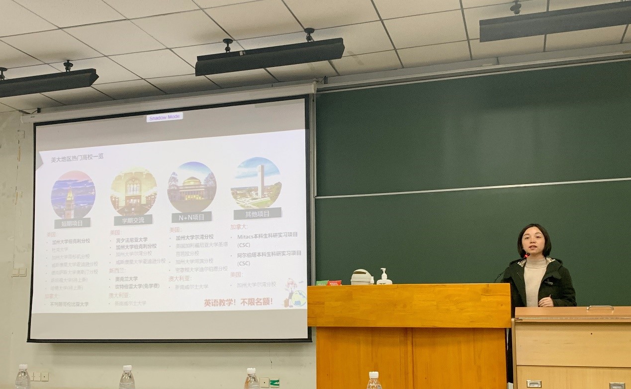 卫甜老师统一介绍了本校本科生出国交流项目类别及相关政策,肖丽娜老师、戴淑琼老师分别详细介绍美大地区、欧洲地区、亚洲地区的交流项目,告诉同学们如果有相关意向的话需要怎样做准备、怎样成功申请。三位老师的分享内容详实、干货满满,给后疫情时期的毕业发展带来了新的思路。