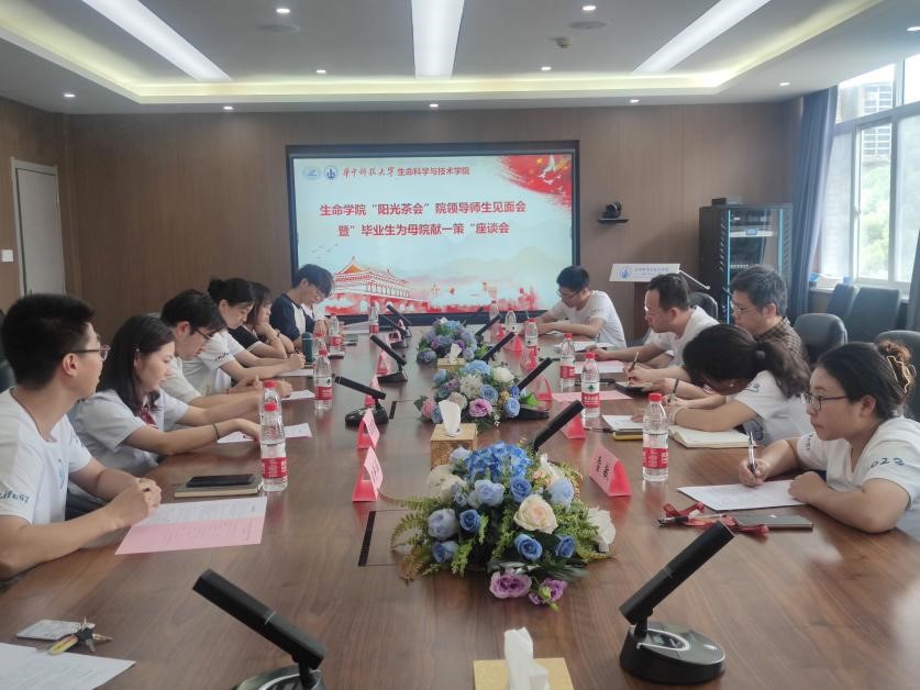 (通讯员 李玉雪)6月13日中午,“阳光茶会”师生见面会暨“毕业生为母院献一策”座谈会在东十一楼221会议室举行。公司党委书记刘笔锋、党委副书记占艺、党政办公室主任吴颖、党政办公室副主任陆婕、科研共享平台副主任雷敏、研究生辅导员冷康鑫、研究生毕业代表及德育助理参会。