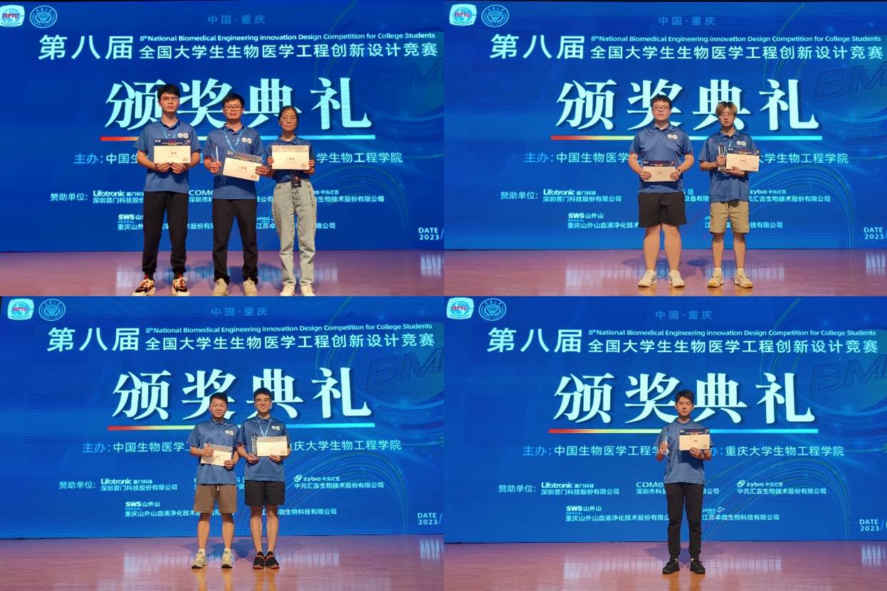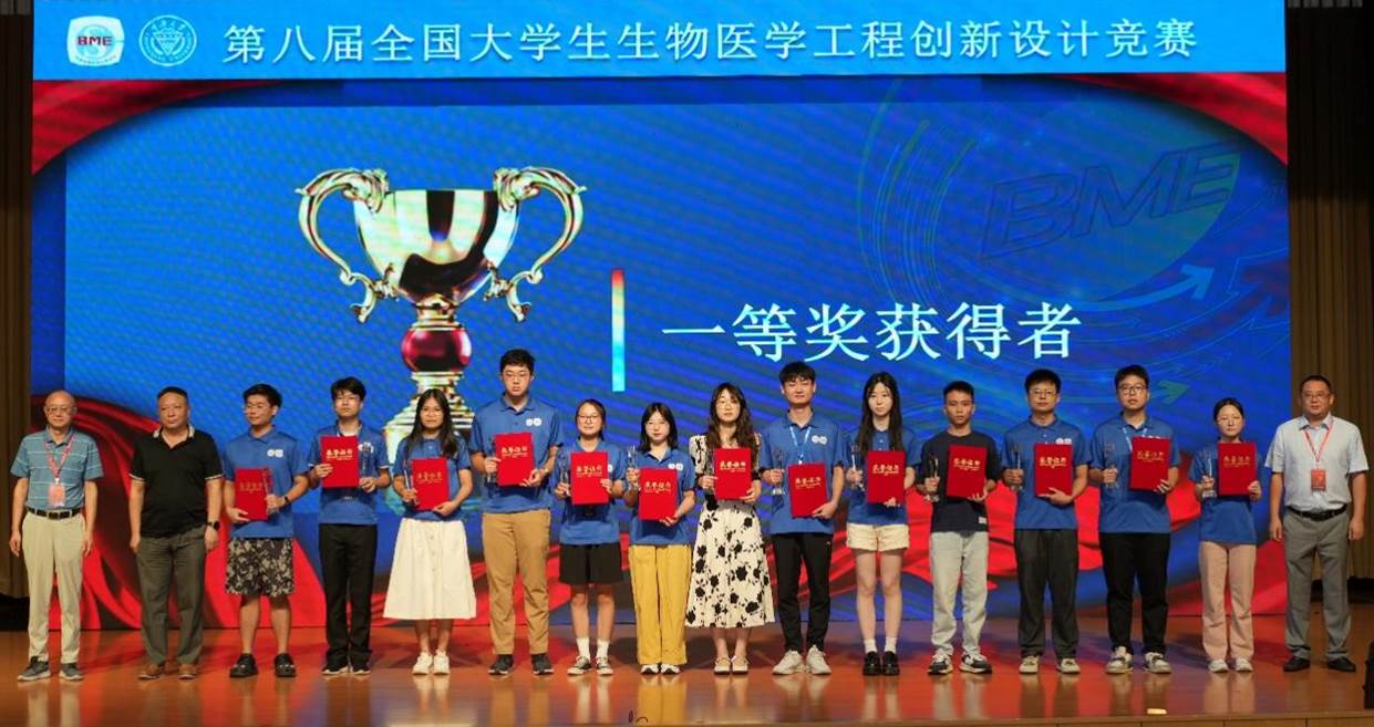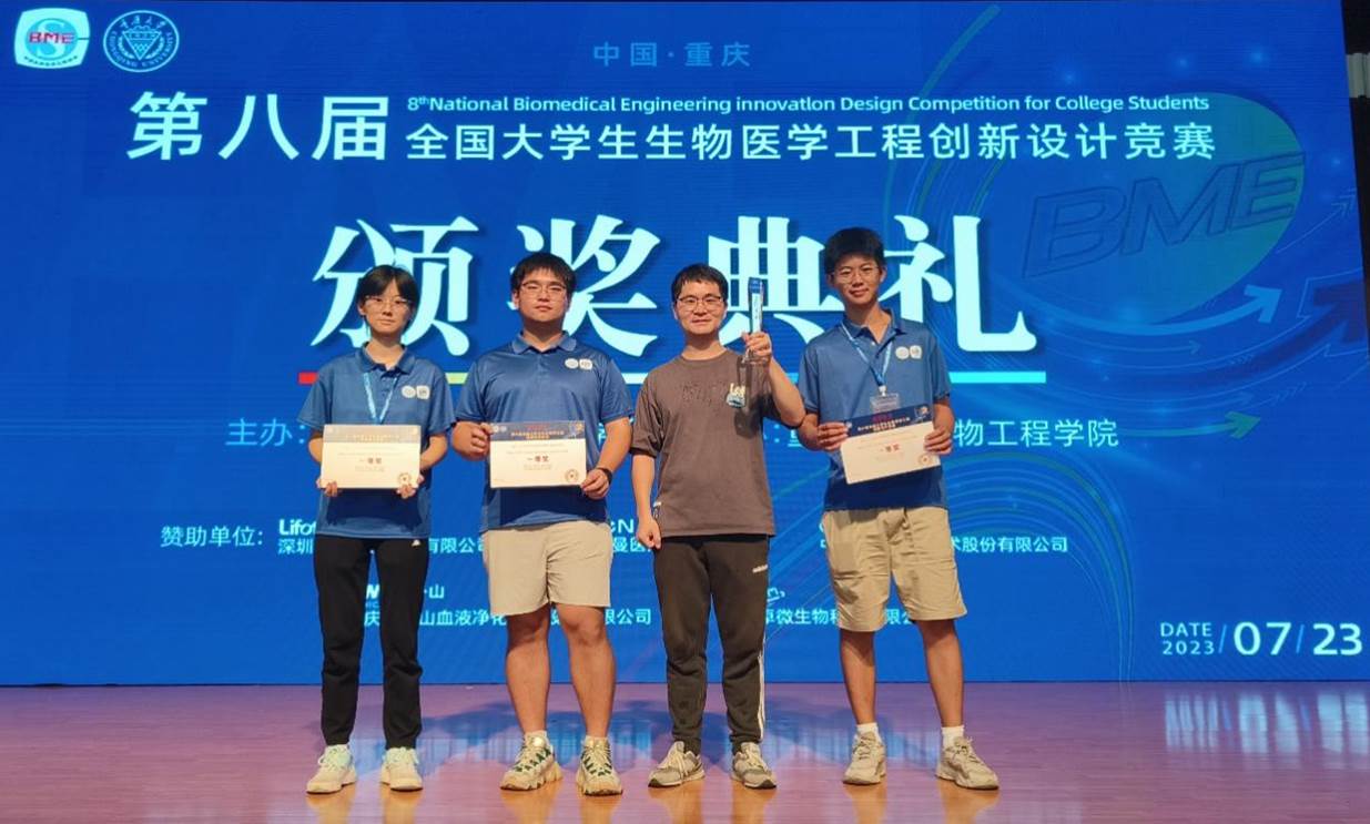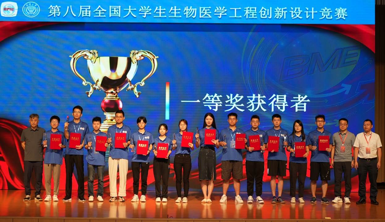 由蔡超老师指导,郭安欣、沈瑞、吴春阳等同学完成的项目《基于ANC耳机声学传感的可穿戴心音检测系统》;胡军老师指导,陈雪、宋成、吴美婵等同学完成的项目《工程化益生菌肿瘤原位药物合成增强光热联合免疫治疗》分别荣获一等奖。由刘笔锋老师指导,李顺基、刘景轩、章英等同学完成的项目《基于离心式微流控技术的高通量酶联免疫分析系统》;邱武老师指导,李锦鹏、黄彦玮、王杨婷婷等同学完成的项目《基于深度学习的CT增强影像侧枝循环自动评分》;丁明跃老师指导,张以祥、申伯阳、王昊等同学完成的项目《乳腺UCT图像识别》;王植炜老师指导,邱天、谢高翔、张嘉乐等同学完成的项目《穿戴式心电图 ST 段改变的识别》分别荣获二等奖,公司另有7支队伍荣获大赛三等奖。