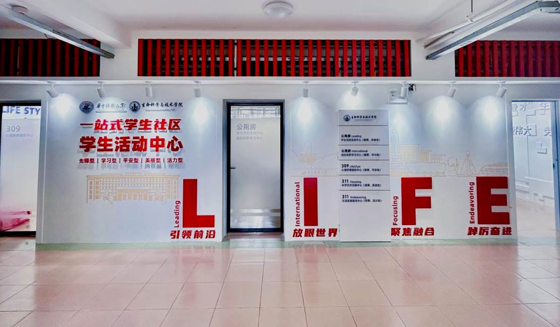 社区活动室位于韵苑二十一栋三楼,分别由三个房间组建而成(中间的公用房、左侧309、右侧311)。其走廊外墙设计以红色与金黄色为主色调,蕴含着公司全体师生坚持党旗领航,秉承“明德厚学、求是创新”校训,传承LIFE文化,脚踏实地、努力拼搏,为争创世界一流的生命学科而努力奋斗的精神内涵。