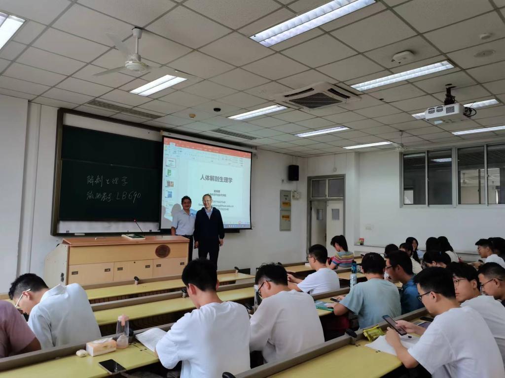 8月30日早7:50,必威西汉姆联官网经理刘剑峰教授在东九教学楼D415教室跟《解剖与生理学》21级课堂敖明章老师交流。