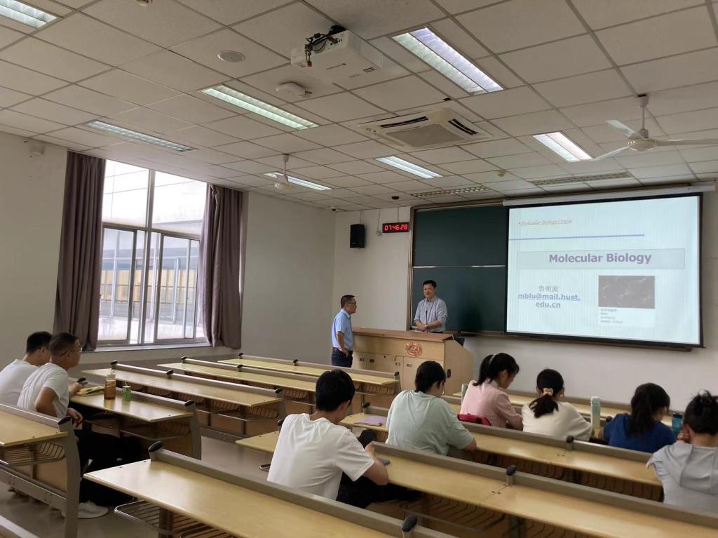 8月29日周二早上7:55,必威西汉姆联官网副经理卢群伟在东九教学楼D508教室跟《分子生物学》21级课堂鲁明波老师交流。