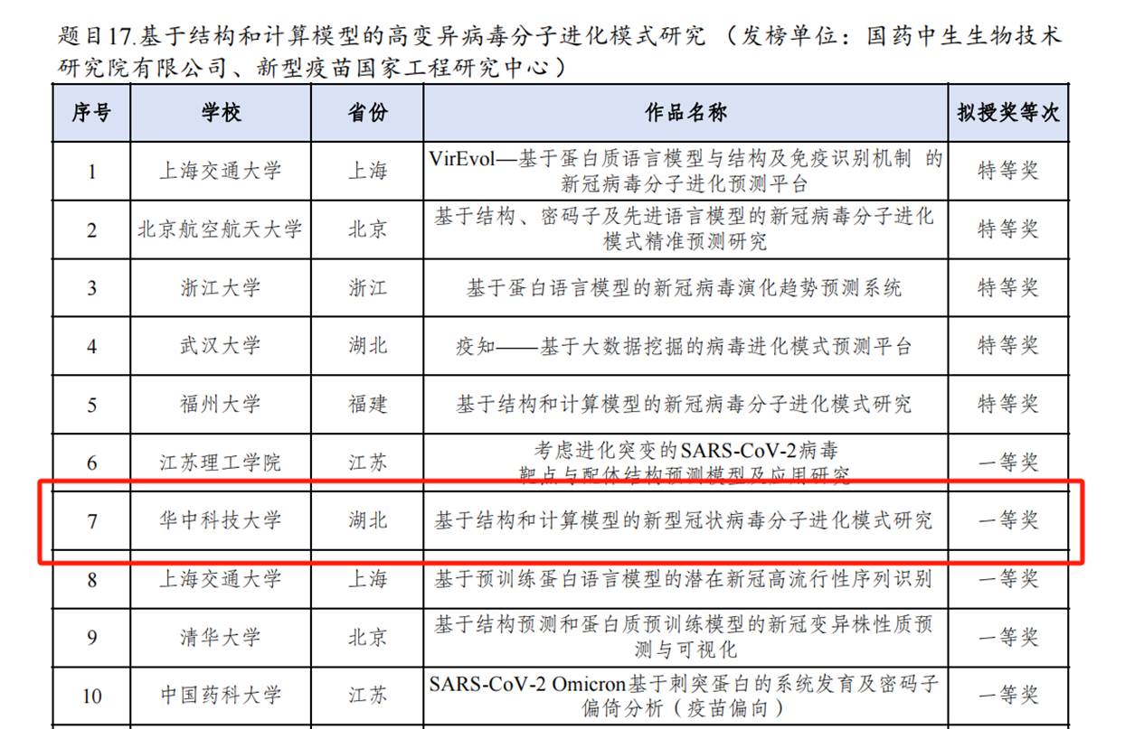 “揭榜挂帅”专项赛国家级一等奖项目《基于结构和计算模型的新型冠状病毒分子进化模式研究》是由汪盛副教授、闫颢芯老师指导,刘茗钰、梁川、杨皓哲、李铭赫、张同、肖晗宇、尹欣恬、周鑫炜、周紫燚、张东方等10名本科生完成的。参赛团队为应对新冠变异导致的潜在公共卫生问题,利用Jax-unirep 结合 Boltzmann generator 两大算法实现了定向进化和高效采样,并设计了预测新冠进化模式的系统。深度学习进化模式,准确预测关键位点,有效掌握新冠突变规律并预判流行趋势,推动疫苗研发,对新冠进行预防。
