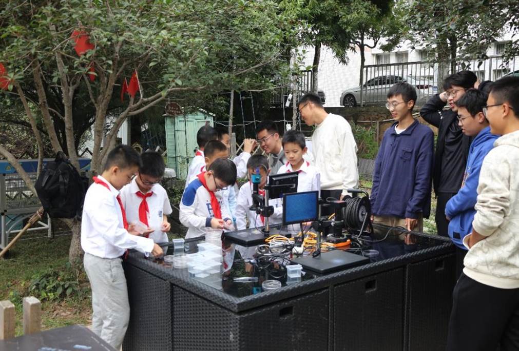 在生命小农园,小朋友们在金文闻老师的指导、辅导员田博文和老员工志愿者的帮助下进行分组,并圆满完成了劳动教育实践活动。男孩子们负责捕捉昆虫,并在显微镜下观察研究,与大自然来了一次亲密接触。女孩子们亲手制作了饼干,品尝到了自己的劳动成果。