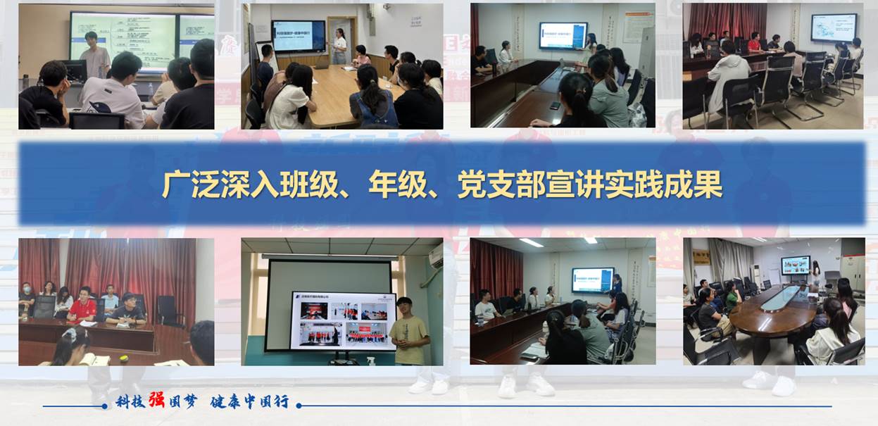 实践队一行11名本硕博员工返校后均在各自所在年级、班级、党团支部完成宣讲,介绍此次实践目的、形程、成果,形成良好的宣传影响和实践育人实效。
