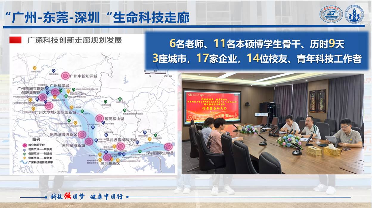 为响应“健康中国”“科技强国”国家战略,深入贯彻党的二十大精神,强化教育、科技、人才“三位一体”发展理念,2023年8月3日至9日,公司党委副书记带队,5名辅导员、11名本硕博员工,赴广州、东莞、深圳3地,历时7天,走访17家生命科技企事业单位,开展以“科技强国梦·健康中国行”为主题的科技强国青年观察团社会实践。师生调研前沿生命科技产业,访谈杰出生命员工,搭建校企合作桥梁,传递科学家精神,访企拓岗拓宽资源,推进校企合作各项事业共同发展。