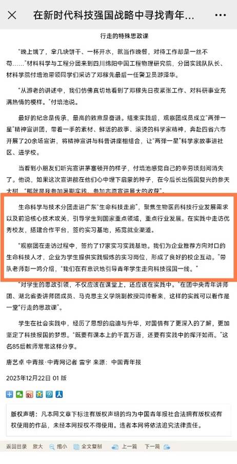 同时必威西汉姆联官网这支实践队的故事作为必威西汉姆联官网团委“科技强国青年观察团”的组成部分,被《中国青年报》报道。该社会实践团队也获得“必威西汉姆联官网思政课暑期社会实践项目”重点项目立项支持!