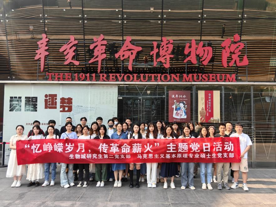 (通讯员:陈茁芊)4月27日,生物城研究生第二党支部同马克思主义基本原理专业硕士生党支部共同开展“忆峥嵘岁月,传革命薪火”联合党日活动,两个支部的党员同志一同前往辛亥革命博物馆参观,了解辛亥革命的历史背景和伟大意义,感悟革命先烈的丰功伟绩,激励青年学子勇于担当,传承革命精神。