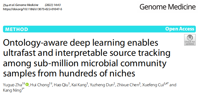 (Correspondent Mingyue Cheng) April 26, 2022, Department of Systems Biology and Bioinformatics, College of Life Science and Technology, Huazhong University of Science and Technology, Professor Kang Ning’s team. The paper entitled “Ontology-Aware Deep Learning Enables Ultrafast and Interpretable Source Tracking among Sub-Million Microbial Community Samples from Hundreds of Niches” was published at the international journal Genome Medicine, Huazhong University of Science and Technology was the first institution. In this paper, they proposed a deep learning method based on biome ontology, which solves the problem of rapid and accurate microbial source tracking among sub-million microbial community samples from hundreds of niches.