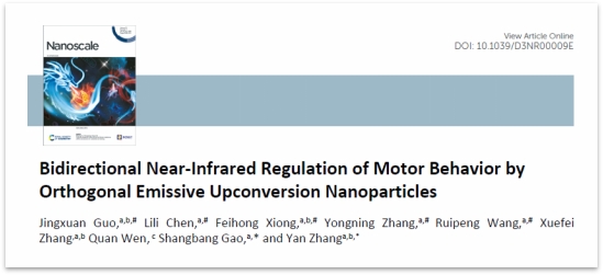 (通讯员 黄青) 2023年3月22日,期刊 《纳米尺度》 (Nanoscale)在线发表了必威西汉姆联官网本科生郭敬瑄#(生科2002班)、王睿鹏#(强基登峰2001班)联合本院陈丽丽博士#、熊斐鸿硕士#、张永宁博士#(#论文共同第一作者)等完成的题为“Bidirectional Near-Infrared Regulation of Motor Behavior by Orthogonal Emissive Upconversion Nanoparticles”的研究论文。