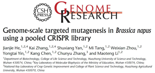 【科研动态】Genome Res | 华中科大栗茂腾教授团队和华中农大张椿雨教授团队基于油菜高通量靶向敲除突变体库挖掘出控制含油量等重要性状的新基因
