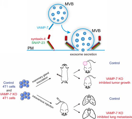 本研究深化了对肿瘤外泌体分泌机制的了解,对于精确调控肿瘤细胞外泌体释放进而有效调干预肿瘤病理过程具有重要意义。