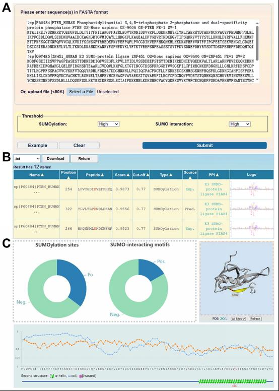 GPS-SUMO 2.0免费向所有人服务且没有登录要求(https://sumo.biocuckoo.cn),关于GPS-SUMO 2.0的使用教程以及注释请参照(https://sumo.biocuckoo.cn/userguide.php)。